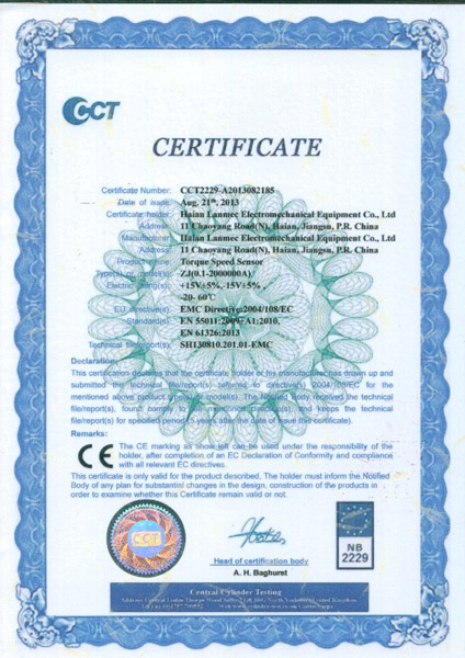 轉(zhuǎn)矩轉(zhuǎn)速傳感器CE證書 |