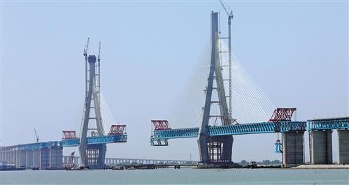 5月23日滬通鐵路大橋27,28號橋墩首次合攏 |