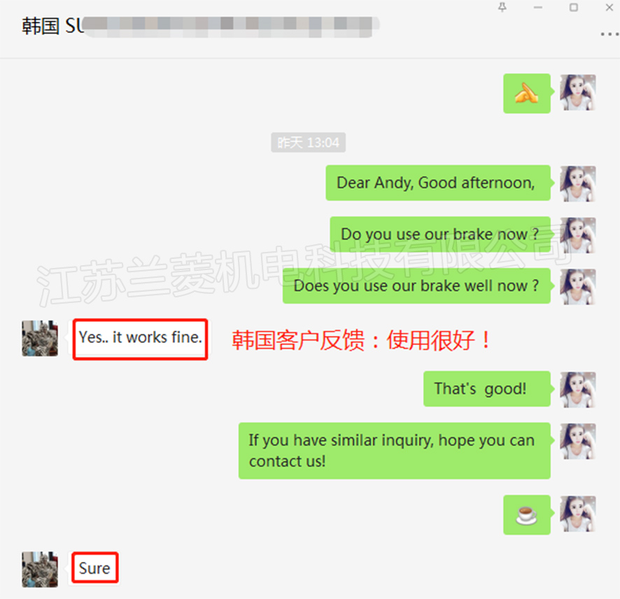 蘭菱科技100N.m磁滯制動器-蝸輪蝸桿減速機測試臺韓國應用現(xiàn)場, 小扭矩、高轉(zhuǎn)速、免維護,客戶好評:It works fine ! “您的滿意,是我們永恒的追求”!蘭菱科技,值得您信賴,咨詢熱線:400-111-3688!